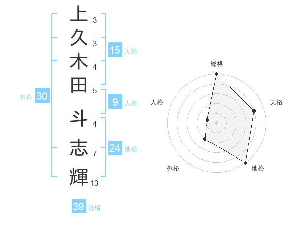 上久木田 斗志輝さんを姓名の画数から五運を鑑定
