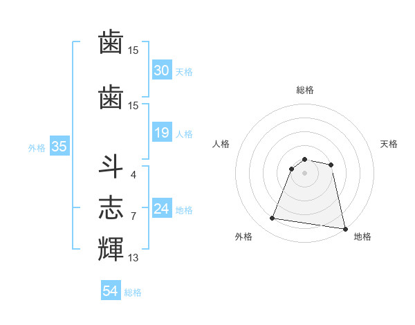 歯歯 斗志輝さんの外格は35画の4点!