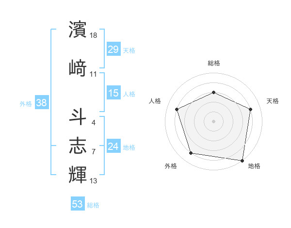 濱﨑 斗志輝さんを姓名の画数から五運を鑑定