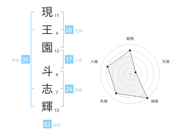 現王園 斗志輝さんを姓名の画数から五運を鑑定