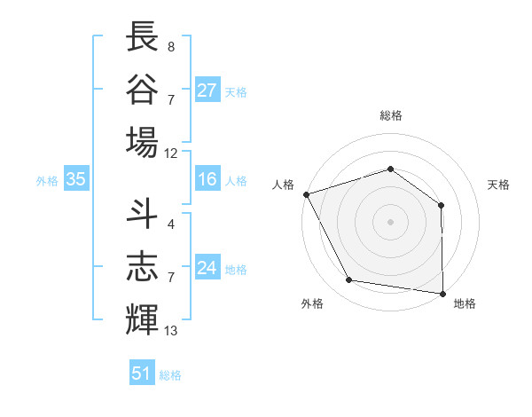 長谷場 斗志輝さんの総格は51画の3点!