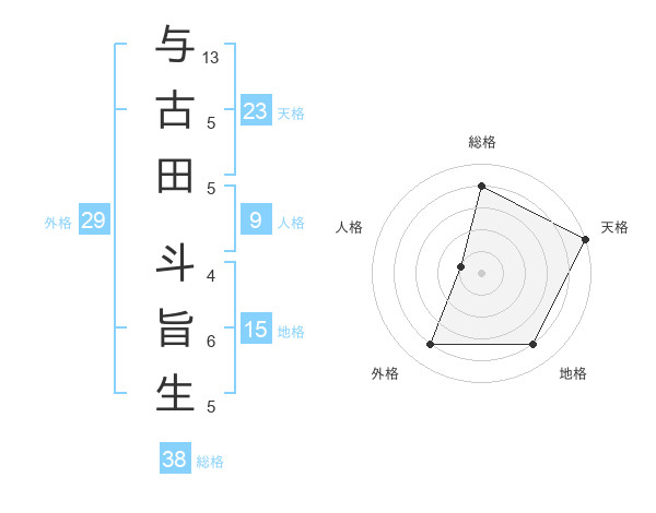 与古田 斗旨生さんを姓名の画数から五運を鑑定