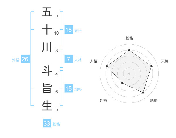 五十川 斗旨生さんの総格は33画の4点
