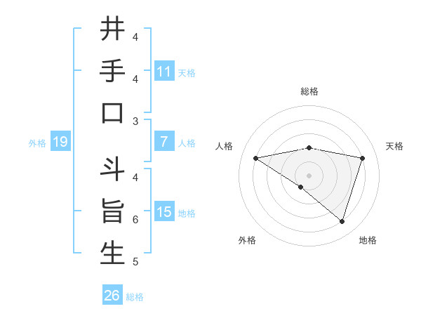 井手口 斗旨生さんの総格は26画の2点!