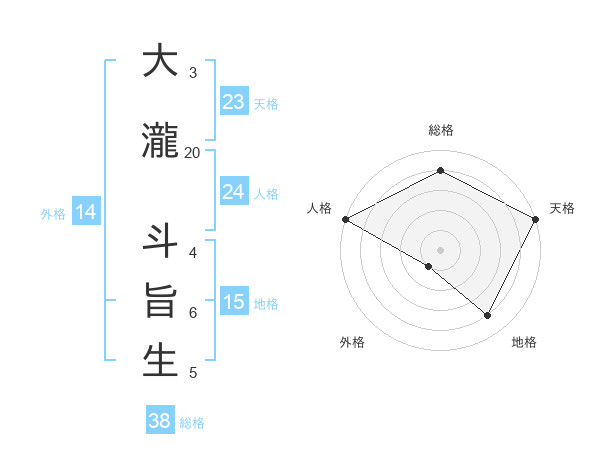 大瀧 斗旨生さんを姓名の画数から五運を鑑定