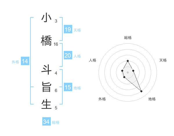 小橋 斗旨生さんの総格は34画の2点