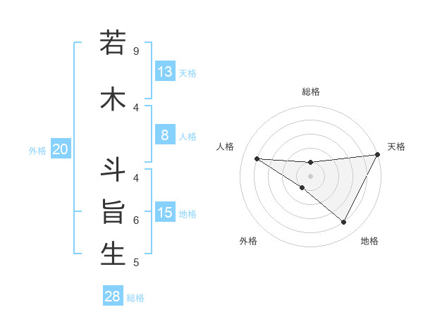 若木 斗旨生さんの総格は28画の1点!