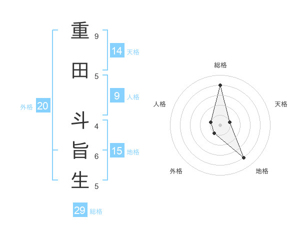 重田 斗旨生さんの総格は29画の4点