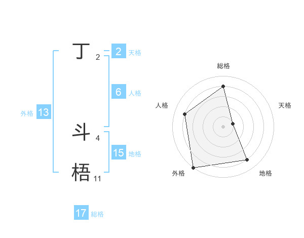 丁 斗梧さんの総格は17画の4点!