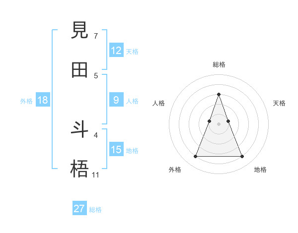 見田 斗梧さんの総格は27画の3点!