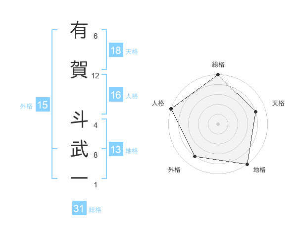 有賀 斗武一さんの総格は31画の5点!