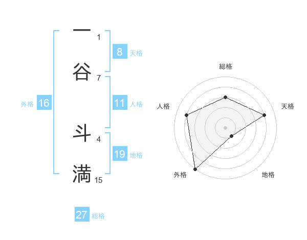 一谷 斗満さんを姓名の画数から五運を鑑定