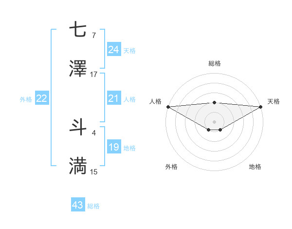 七澤 斗満さんを姓名の画数から五運を鑑定