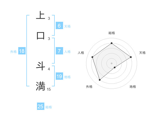 上口 斗満さんの総格は25画の4点!