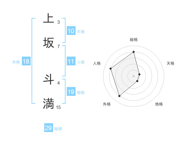 上坂 斗満さんの総格は29画の4点!