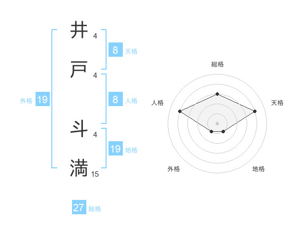 井戸 斗満さんの総格は27画の3点!