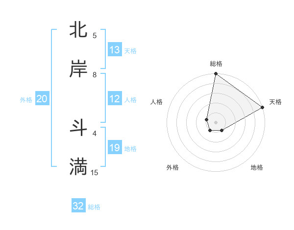 北岸 斗満さんを姓名の画数から五運を鑑定