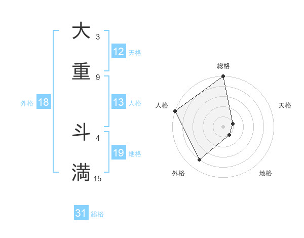 大重 斗満さんの総格は31画の5点!