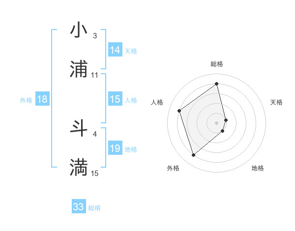 小浦 斗満さんの総格は33画の4点!