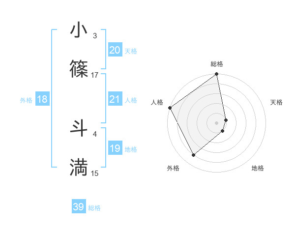 小篠 斗満さんの天格は20画の1点!