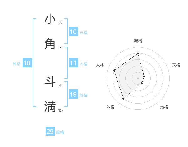 小角 斗満さんの総格は29画の4点!