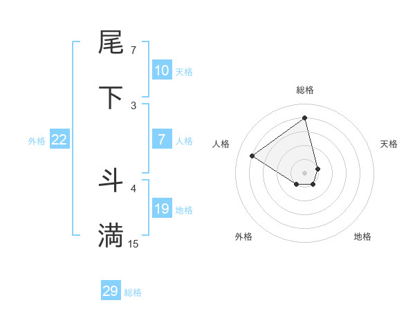 尾下 斗満さんの総格は29画の4点!