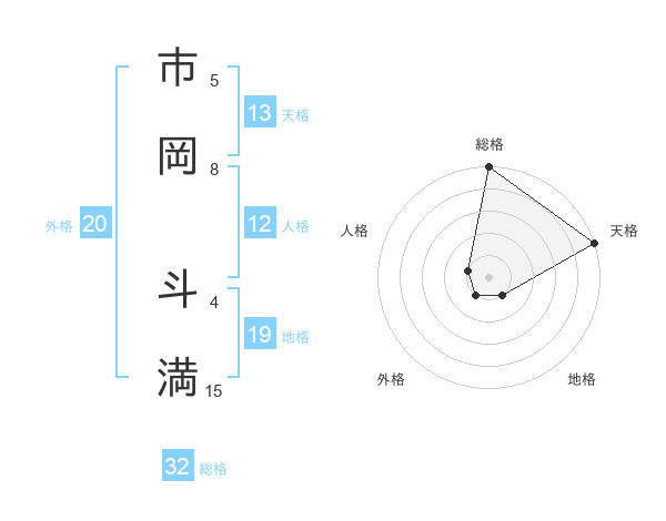 市岡 斗満さんの総格は32画の5点!
