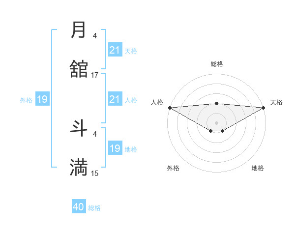 月舘 斗満さんの天格は21画の5点!