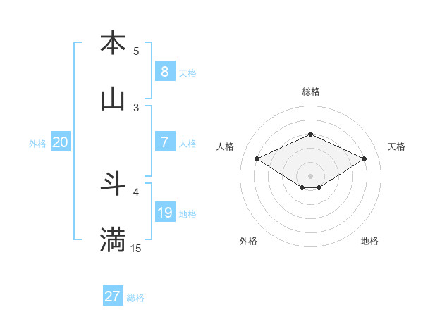 本山 斗満さんの総格は27画の3点!