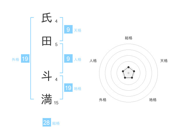 氏田 斗満さんを姓名の画数から五運を鑑定