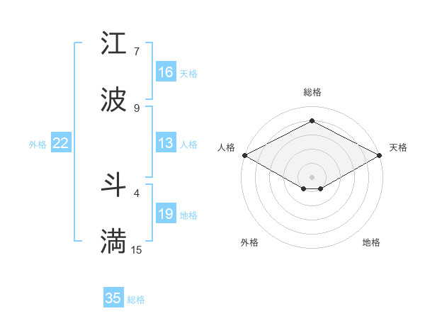 江波 斗満さんの外格は22画の1点!