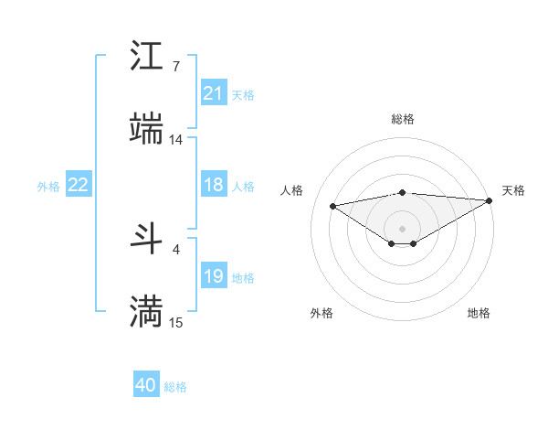 江端 斗満さんの外格は22画の1点!