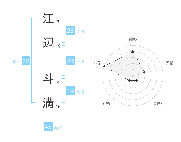 江辺 斗満さんの総格は45画の4点!