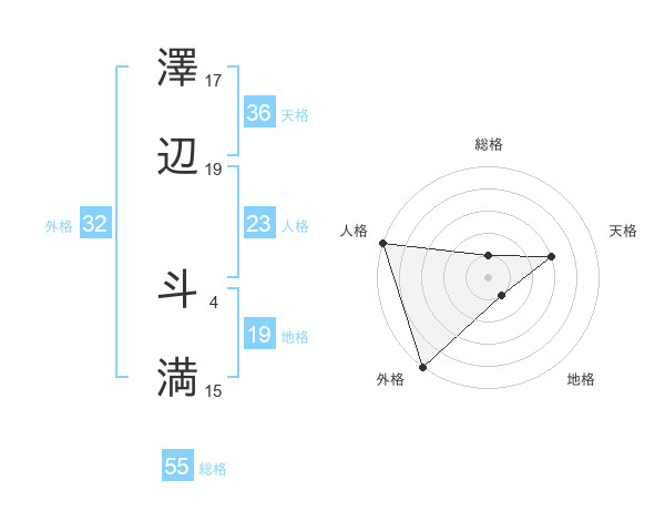 澤辺 斗満さんの総格は55画の1点!