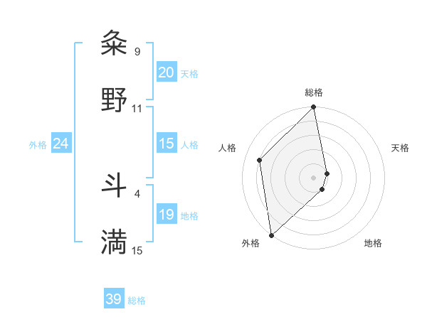 粂野 斗満さんを姓名の画数から五運を鑑定