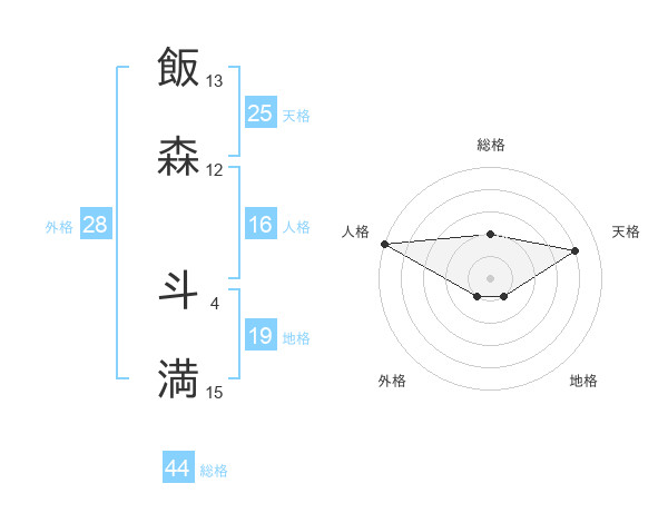 飯森 斗満さんの総格は44画の2点!