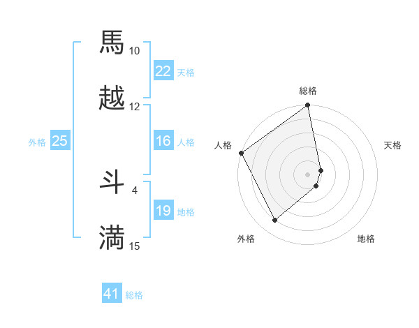 馬越 斗満さんを姓名の画数から五運を鑑定