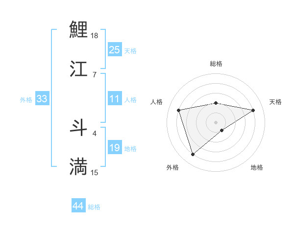 鯉江 斗満さんの総格は44画の2点!