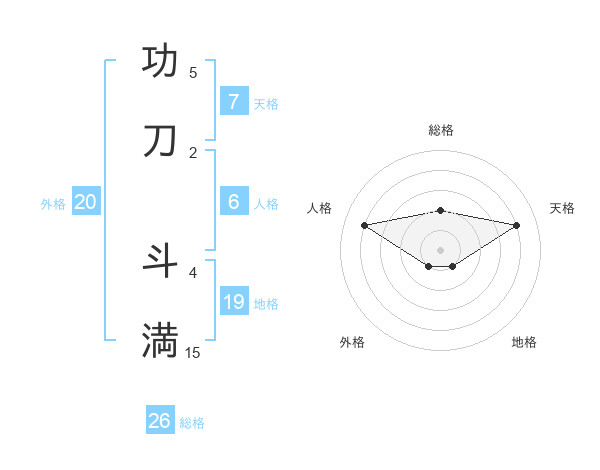 功刀 斗満さんの総格は26画の2点!