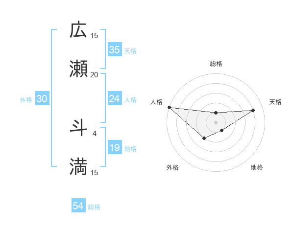 広瀬 斗満さんの総格は54画の1点!