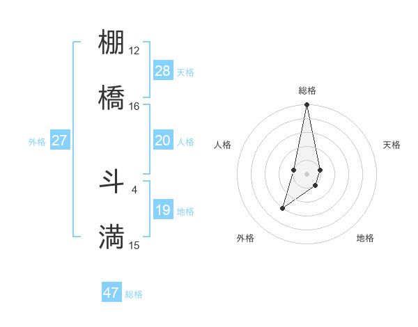 棚橋 斗満さんの総格は47画の5点!