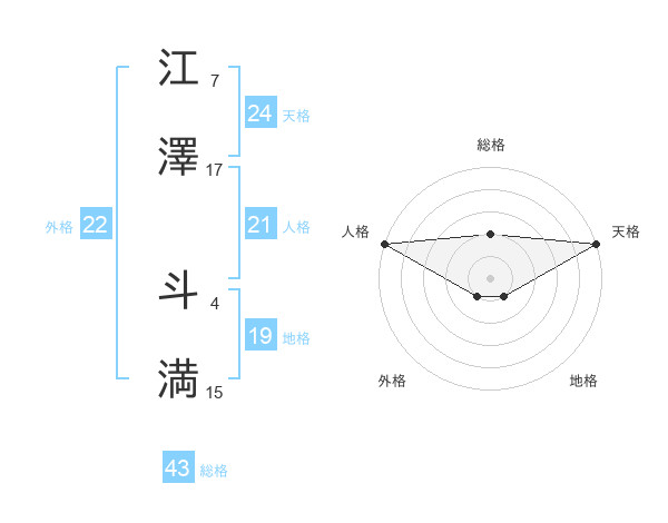 江澤 斗満さんを姓名の画数から五運を鑑定