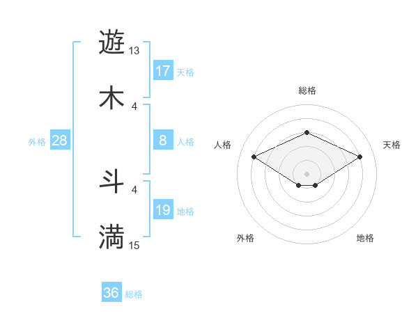 遊木 斗満さんを姓名の画数から五運を鑑定