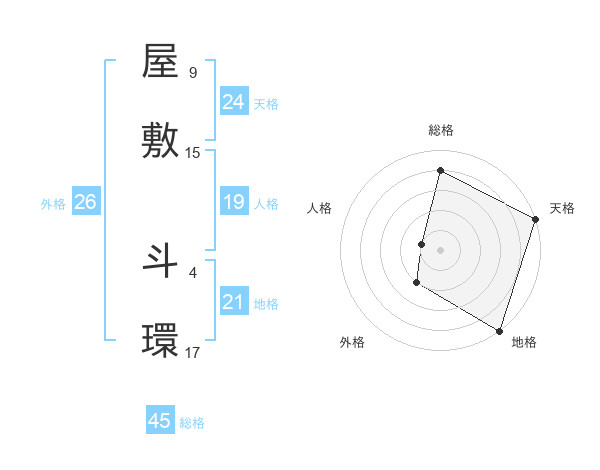 屋敷 斗環さんを姓名の画数から五運を鑑定