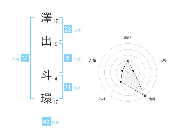 澤出 斗環さんを姓名の画数から五運を鑑定