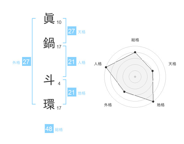 眞鍋 斗環さんを姓名の画数から五運を鑑定
