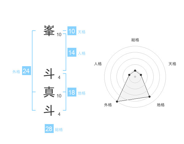 峯 斗真斗さんの総格は28画の1点!