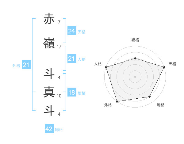 赤嶺 斗真斗さんの外格は21画の5点!