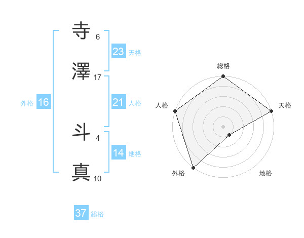 寺澤 斗真さんの総格は37画の5点!