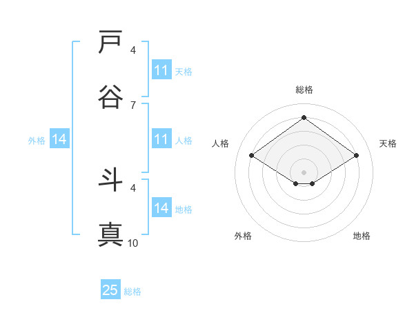 戸谷 斗真さんの総格は25画の4点!